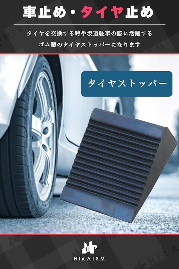 「車止め・タイヤ止め」タイヤを交換する時や坂道駐車の際に活躍する、ゴム製のタイヤストッパーになります。