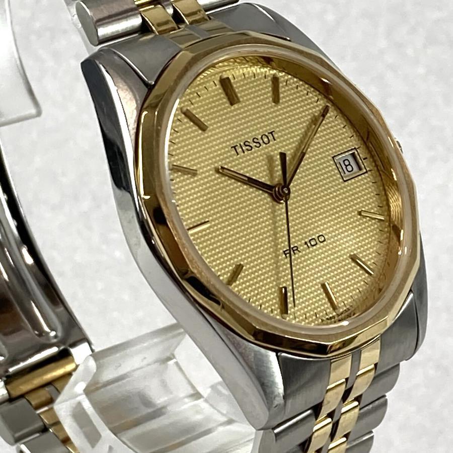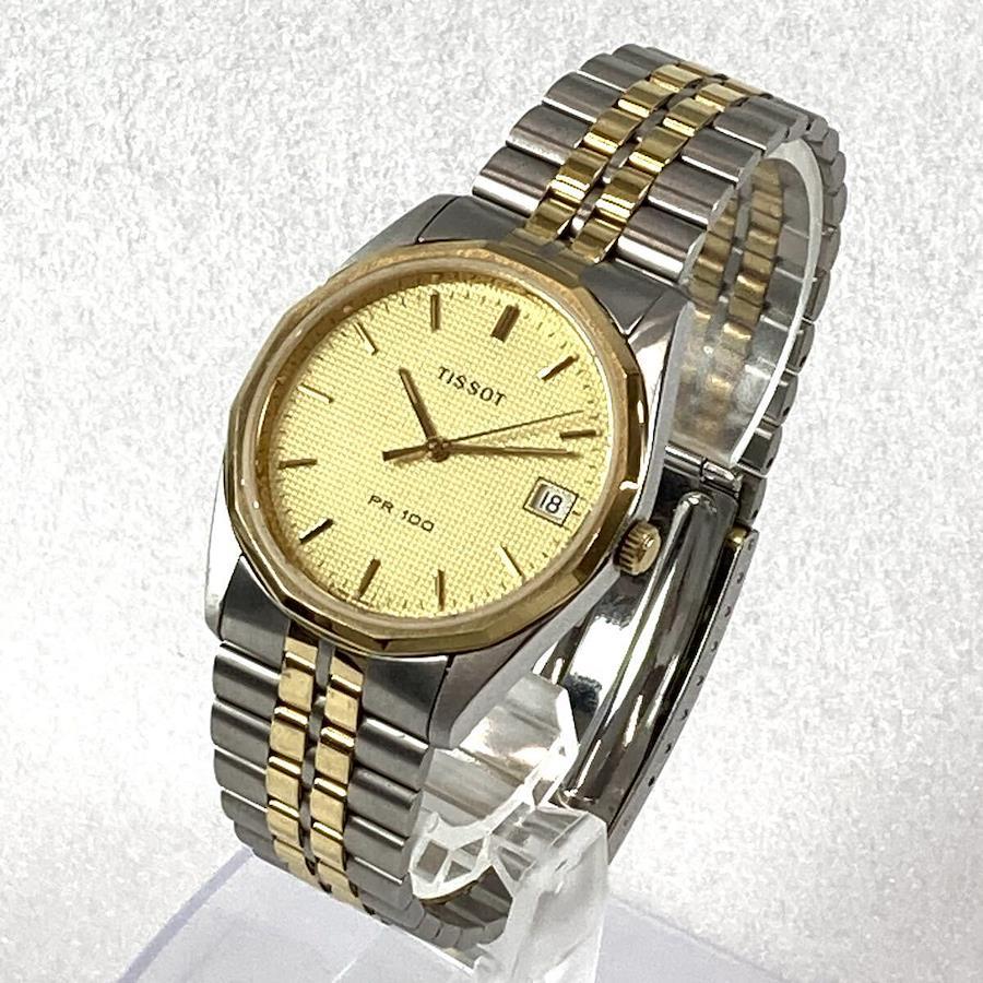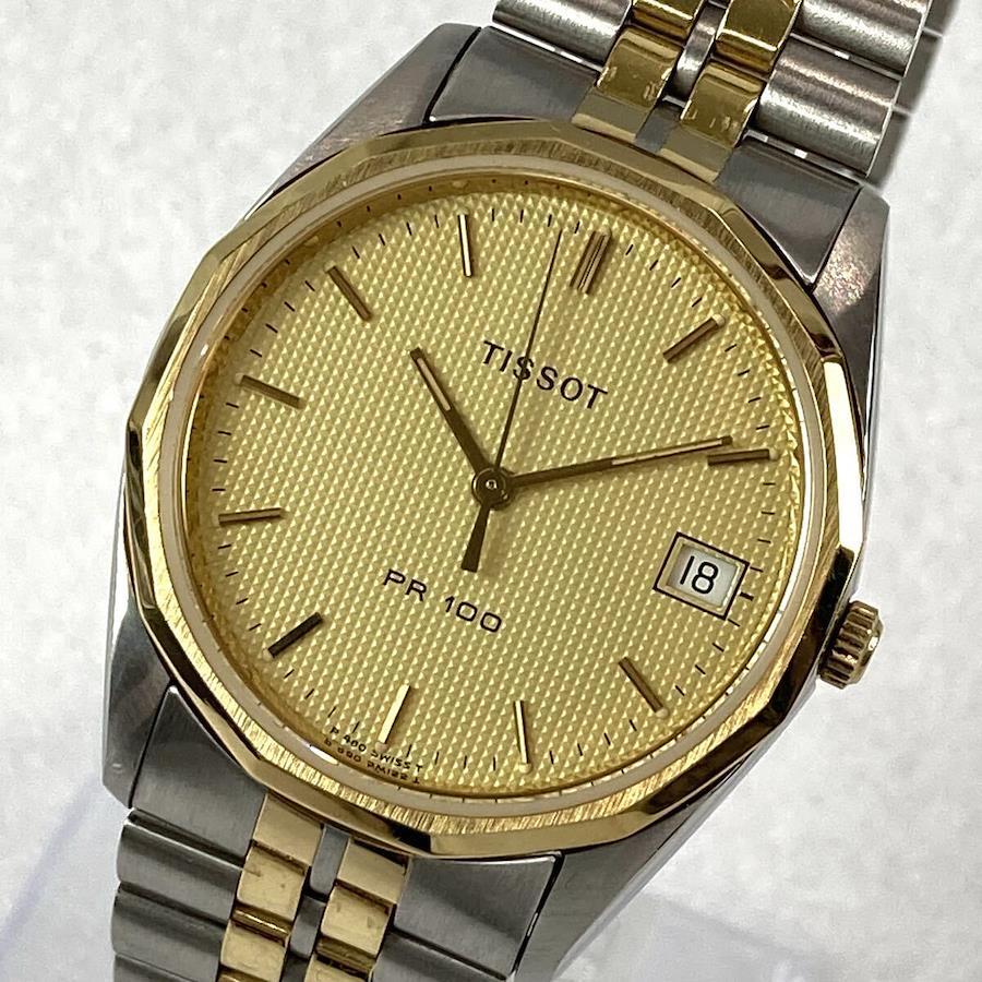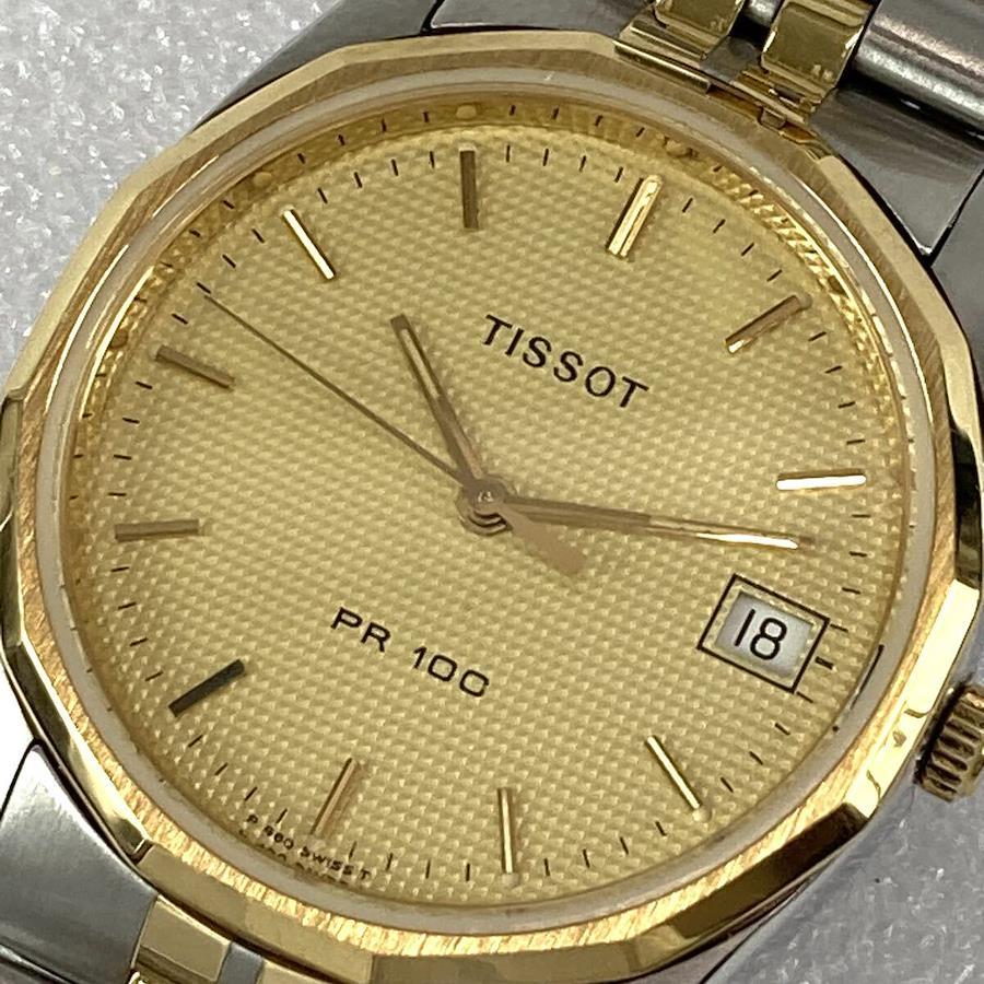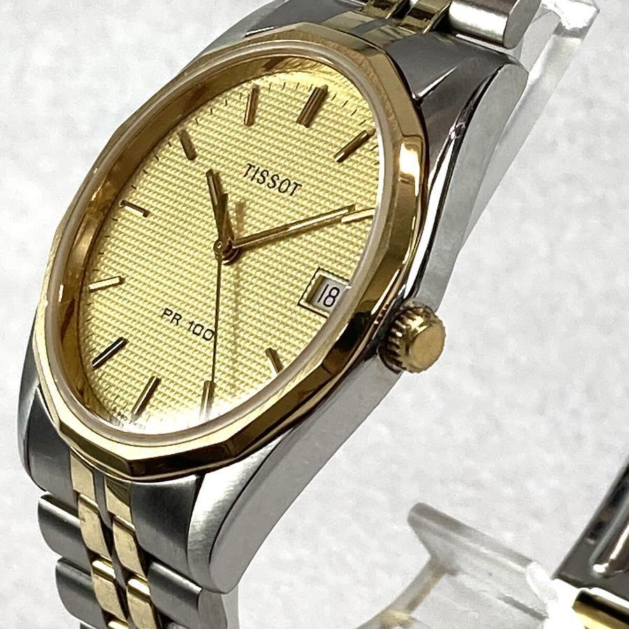 TISSOTPR100アナログ クォーツドレスウォッチ12角形ベゼルコンビネーションゴールドメンズ腕時計
