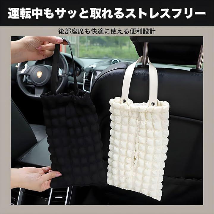 スナップボタン付きの持ち手で、車に吊り下げたり部屋に置いたりと多用途に使えるアイテムです。