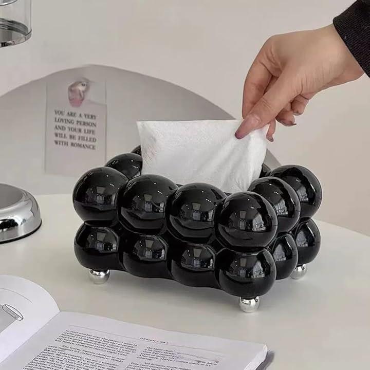 この装飾的なティッシュカバーは、広口の紙取り出し口、素早く簡単にアクセスできる大きな開口部、シンプルで寛大なデザインです。