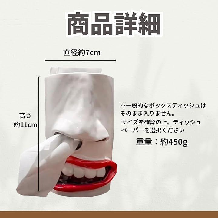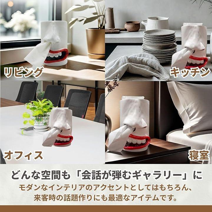 ティッシュケースでありながらインテリア雑貨としての存在感も高く、日常空間にユーモアと個性をプラスします。