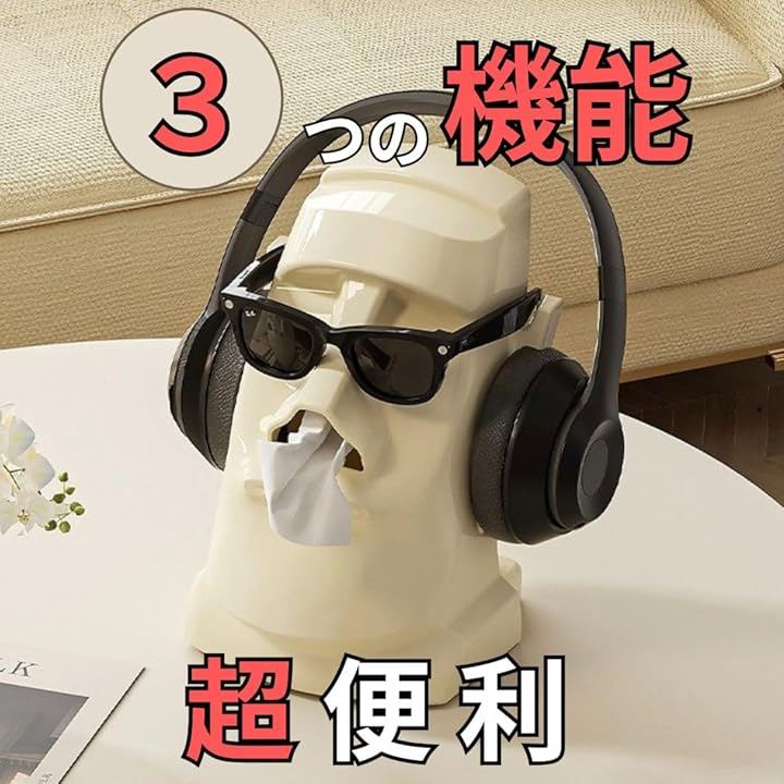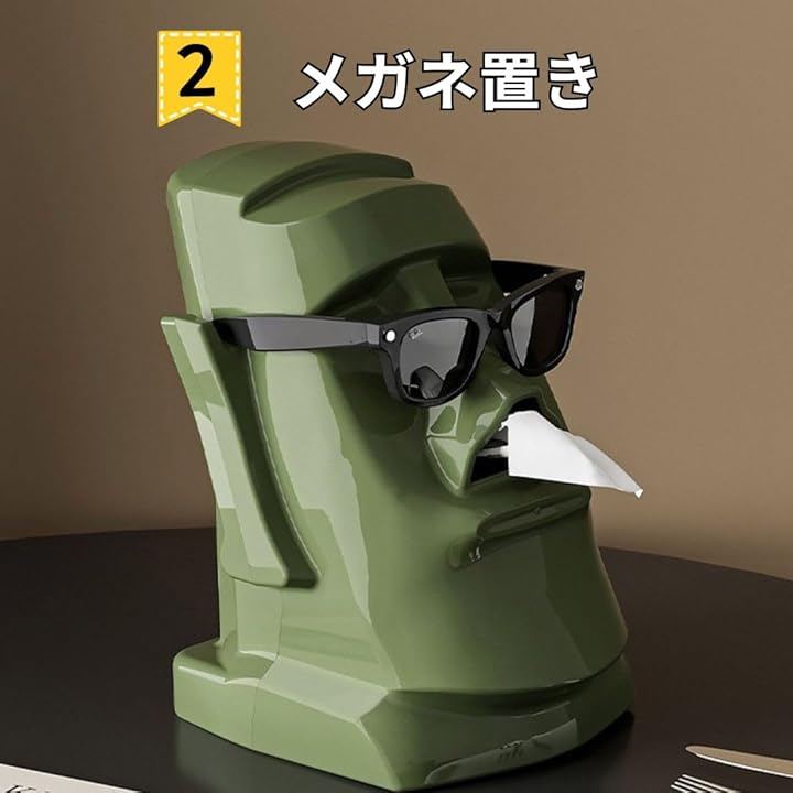 「ユニークなデザインで目を引く」モアイ像型のティッシュケースは、ユニークで個性的なデザインが特徴。