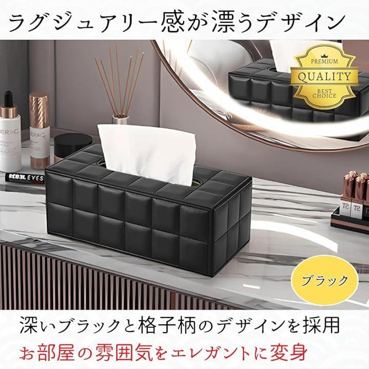 「ラグジュアリー感が漂うデザイン」格子柄のデザインを採用したテッシュケース。