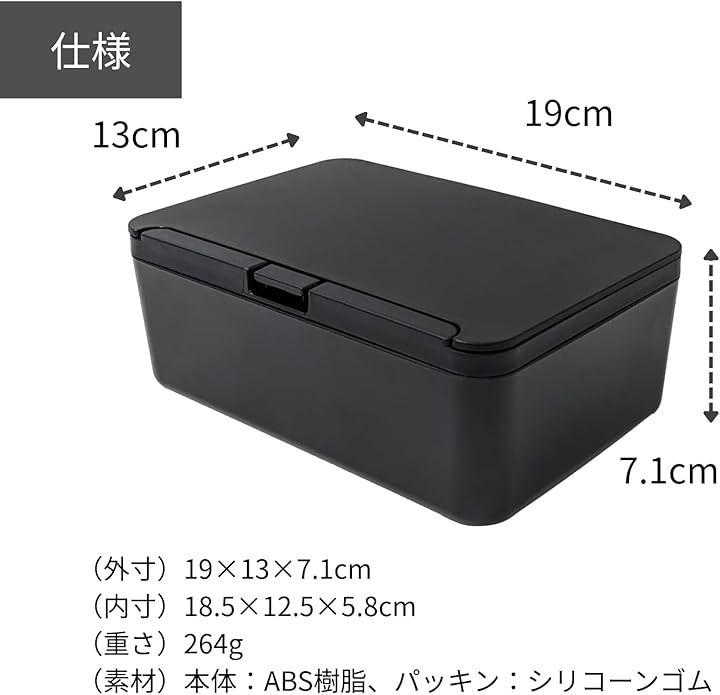 「仕様」(外寸)19x13x7.1cm (内寸)18.5x12.5x5.8cm (重さ)264g (素材)本体:ABS樹脂、パッキン:シリコーンゴム
