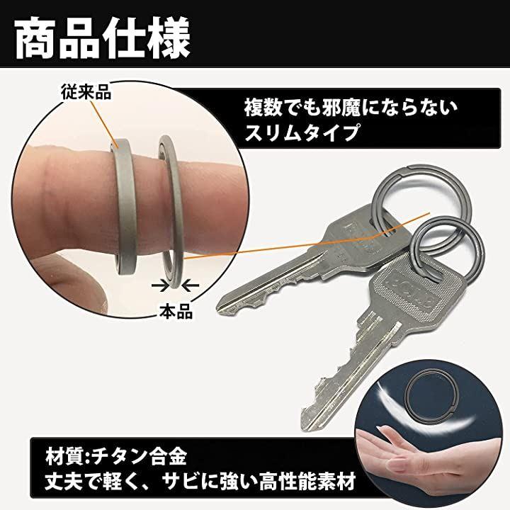 「チタン製おしゃれなスリムキーリング(Sサイズ3個+Mサイズ2個セット)」・チタン合金製のスリム2重キーリングです。