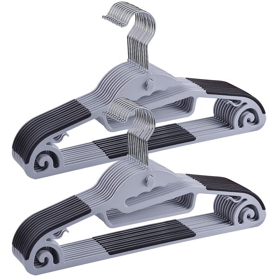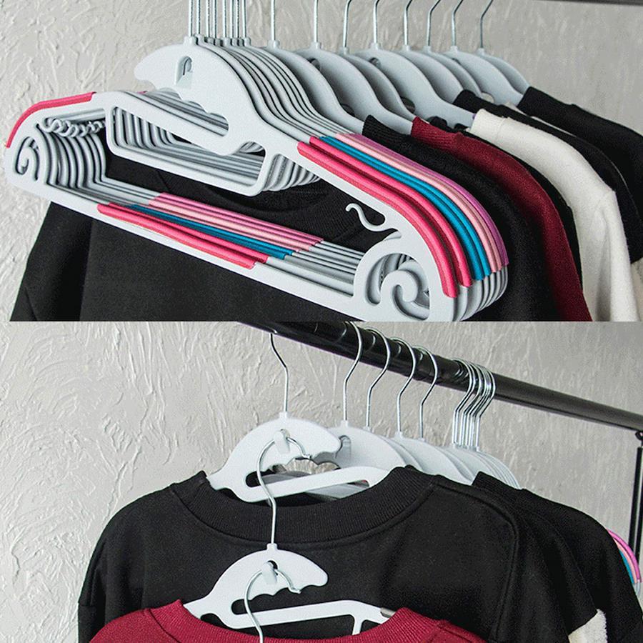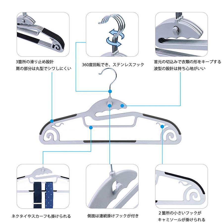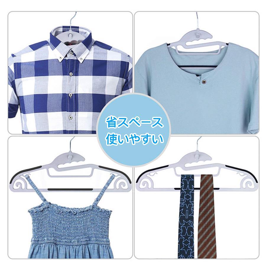 3営業日以内に発送≪新品未開封品≫【省スペース】ハンガーの厚さはわずか0.4cmで、収納機能がアップします。ハンガーの上の側面に連結用フックが付いているで、通常のハンガーに比べて、クローゼットにすっきりと収納でき、もっと多くの空間を節約できます。【高品質耐久性持ちハンガー 】高品質スチール+ABS素材を採用して、ハンガーは長い寿命を持ちます。柔軟性が強く、力を入れて、曲げても折れにくいです。スリムタイプ、軽量、耐久性にも優れています。どんな家庭でも重宝されることに間違いないです。【デザイン】人間工学設計なので、掛け服をシワにくいです。S型の首元の切込みのデザインで、襟ぐりを保護して変形しにくく、服が便利に掛けられます。Tシャツ、セーター、コート、スカート、洋服はもちろん、ズボン、タオル、マフラーでも大丈夫です。ハンガーの下に小さいフックが、キャミソールも掛けられます。【360度回転フック】360°回転できフックは錆にくくて、手間がなし便利に使えられます。掛けた服を回転して調整でき、アイロンがけに便利になります。【乾湿両用・すべらない】乾湿両用ハンガーです。濡れた服も掛けられます。ハンガーの肩部分と下側は3か所に滑り止めのゴムが付いていて、衣類をしっかりキップできる滑らないハンガーです!