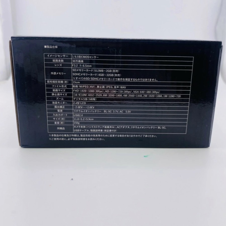 | 付属品 | ACアダプター、リチウムイオンバッテリー、USBケーブル、取扱説明書(保証書付き) |
