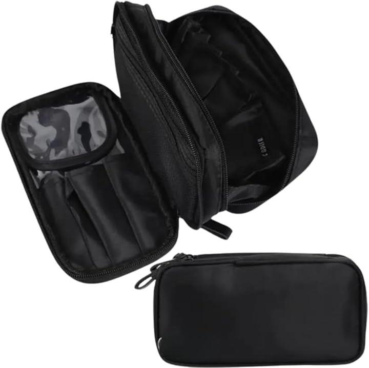 to all gennie Cosmetic Pouch, Double-Layer, Large Capacity, Double Zipper, Makeup Pouch, Cosmetic Storage, Compact, with Brush Holder, Functional Travel Pocket