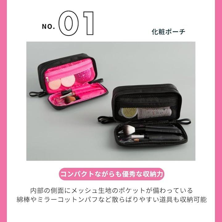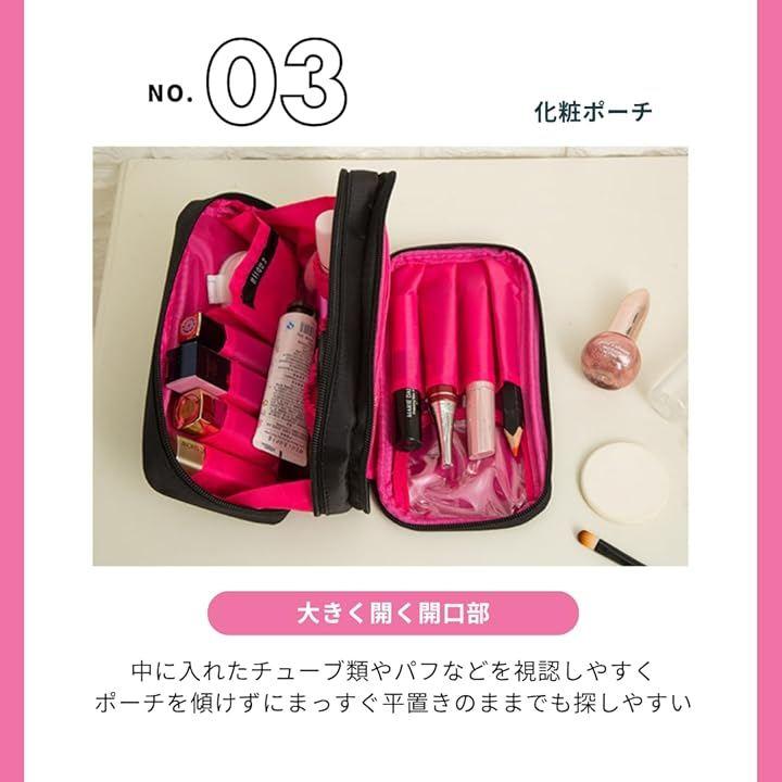 」なんてことありませんか?内部の側面にメッシュ生地のポケットが備わっており、小さなチップブラシや綿棒、ミラー、コットンパフなどの散らばりやすい小物を分けて収納可能。