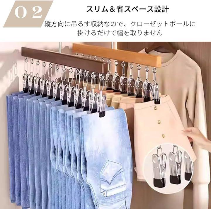 「スリム&省スペース設計」縦方向に吊るす収納なので、クローゼットポールに掛けるだけで幅を取らず、棚や引き出しを圧迫しません。