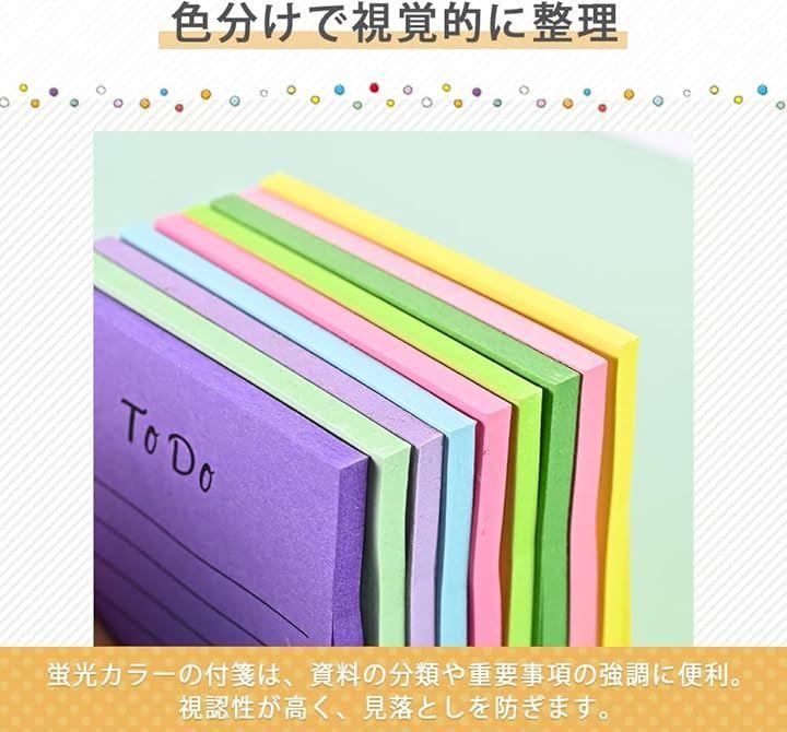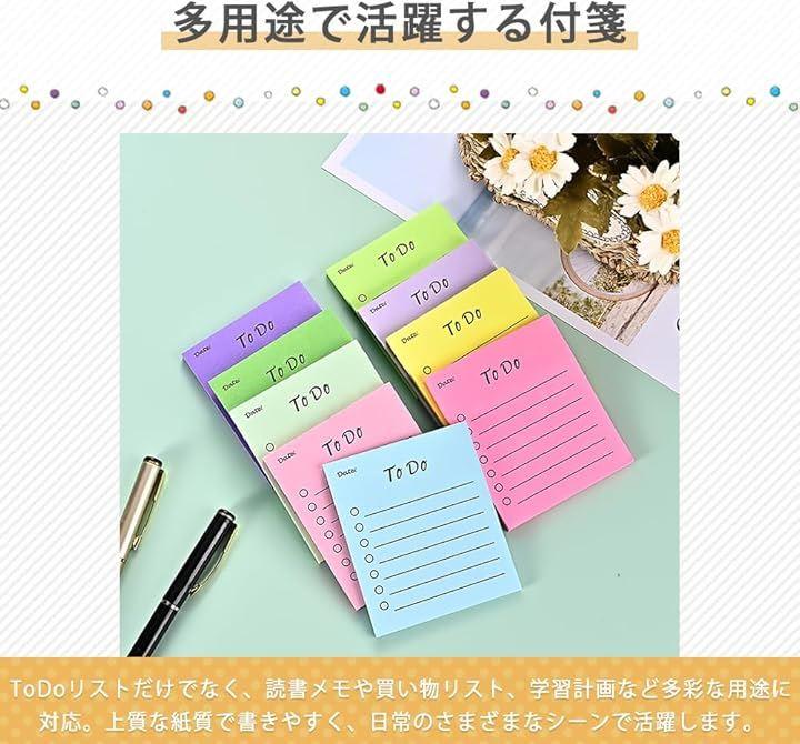 「多用途で活躍する付箋」ToDoリストだけでなく、読書メモや買い物リスト、学習計画など多彩な用途に対応。