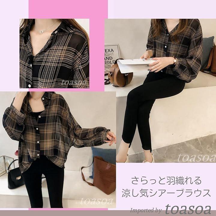 ・「透け感のあるシフォン素材、シアー素材のブラウスです。