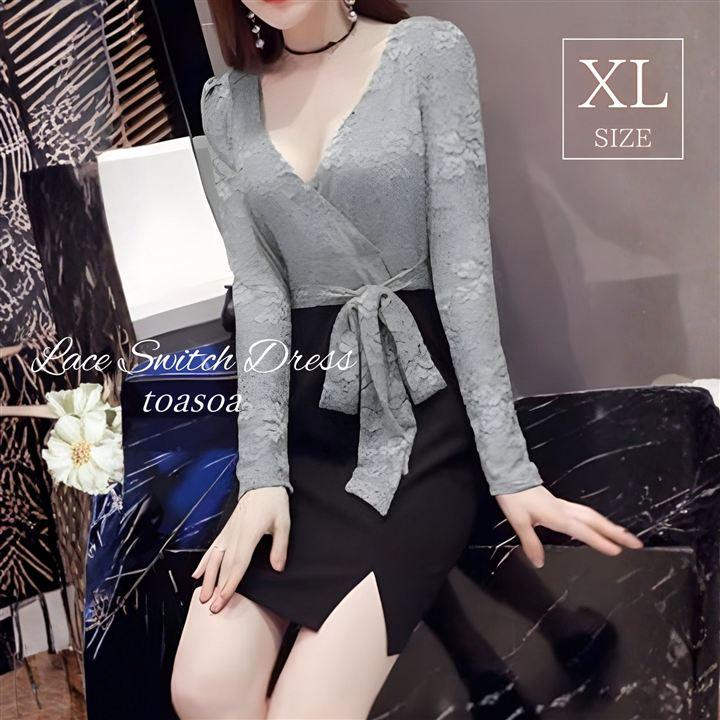 体に沿うラインと太もものスリットが色っぽいミニ ワンピース。