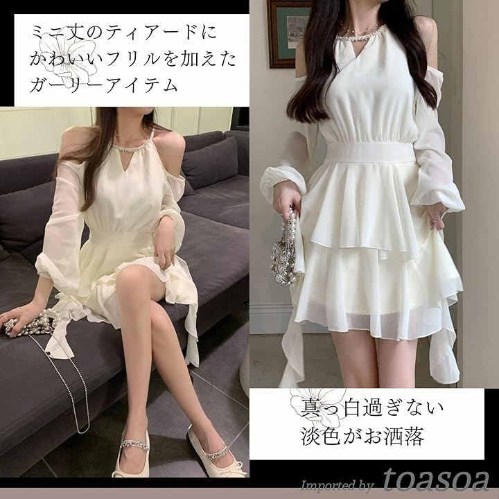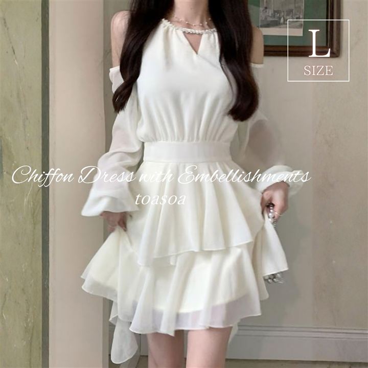 柔らかいホワイトカラー、シフォンのふんわりとした特別感のある生地を使用したチュニックワンピース。