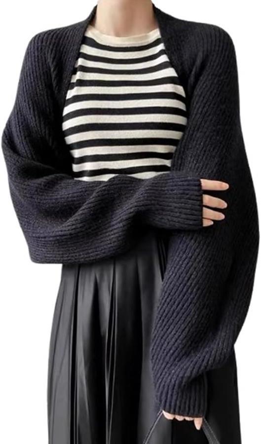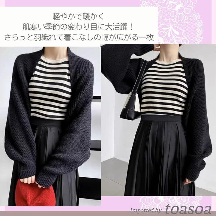 カジュアルにもきれいめにも着こなせるモモンガ風ドルマンスリーブカーディガン。