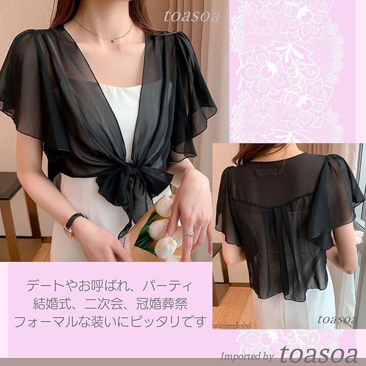 さっと羽織れる軽さが魅力のシフォン フリル リボン ボレロ。