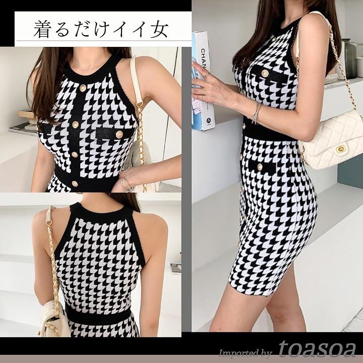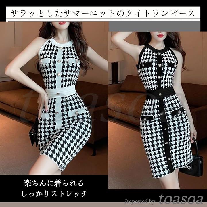 1枚は持っておきたい、レディなノースリ ニット ワンピース。