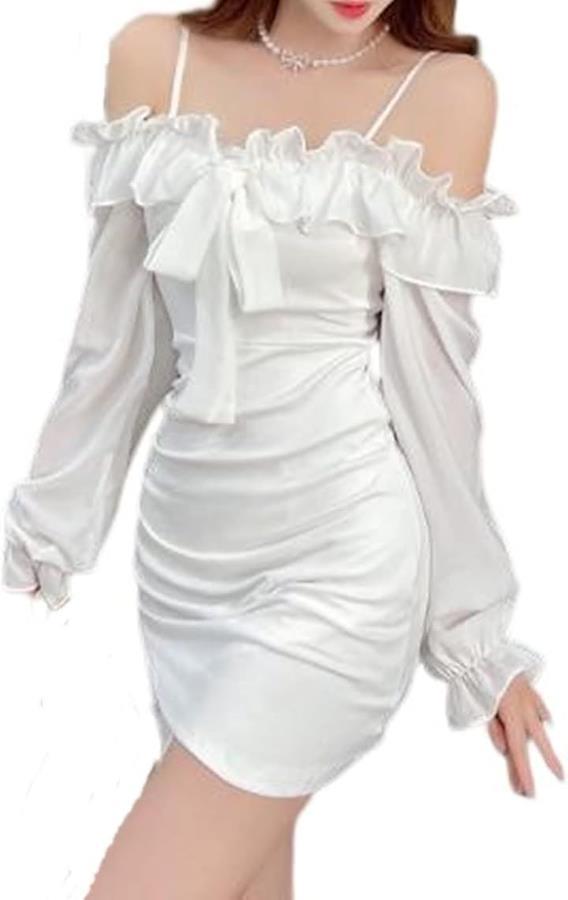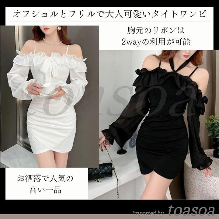 オフショルダーにフリルをあしらった大人可愛いタイト ワンピー ドレス。