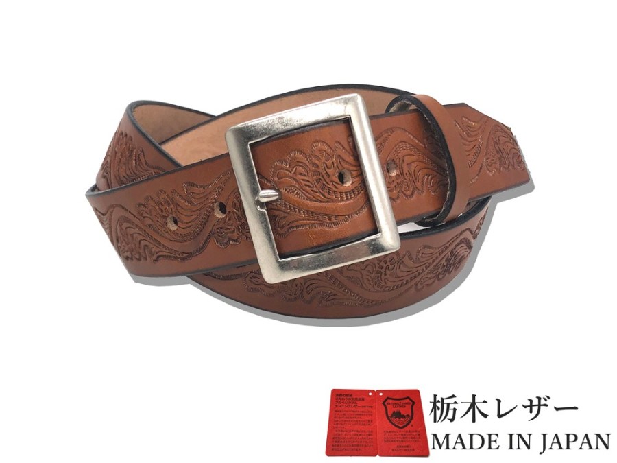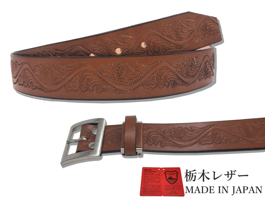 Tochigi Leather Belt for Men, Genuine Cowhide Leather, Casual Style, 40mm Width, 2 Sizes, Embossed Craft Finish, 6 Colors, Made in Japan, Suitable for Denim Jeans, Men's & Women's.