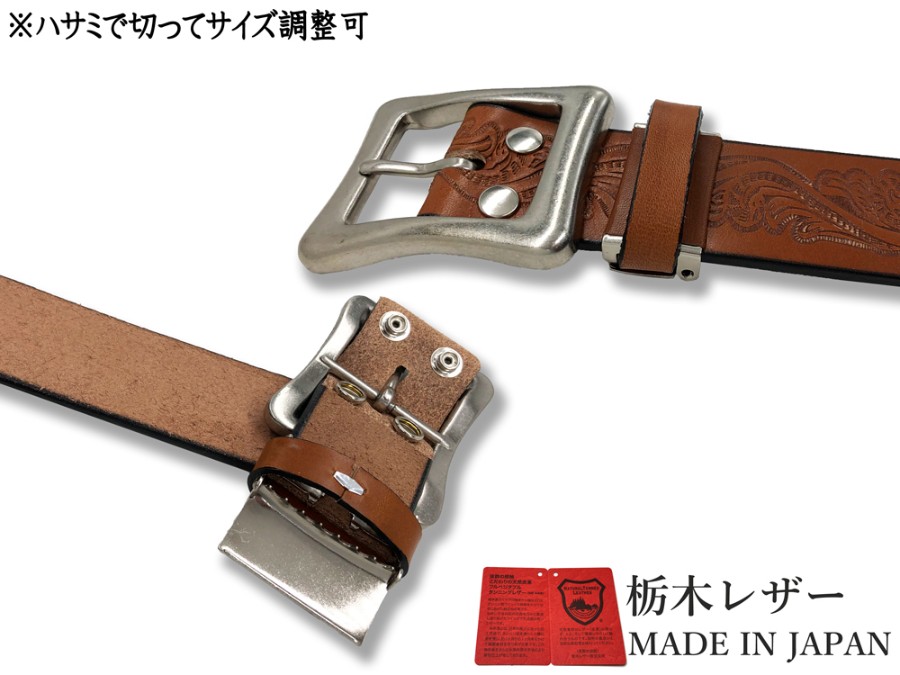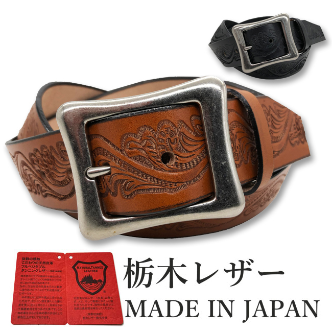 Tochigi Leather Belt for Men, Genuine Cowhide Leather, Casual Style, 40mm Width, 2 Sizes, Embossed Craft Finish, 6 Colors, Made in Japan, Suitable for Denim Jeans, Men's & Women's.