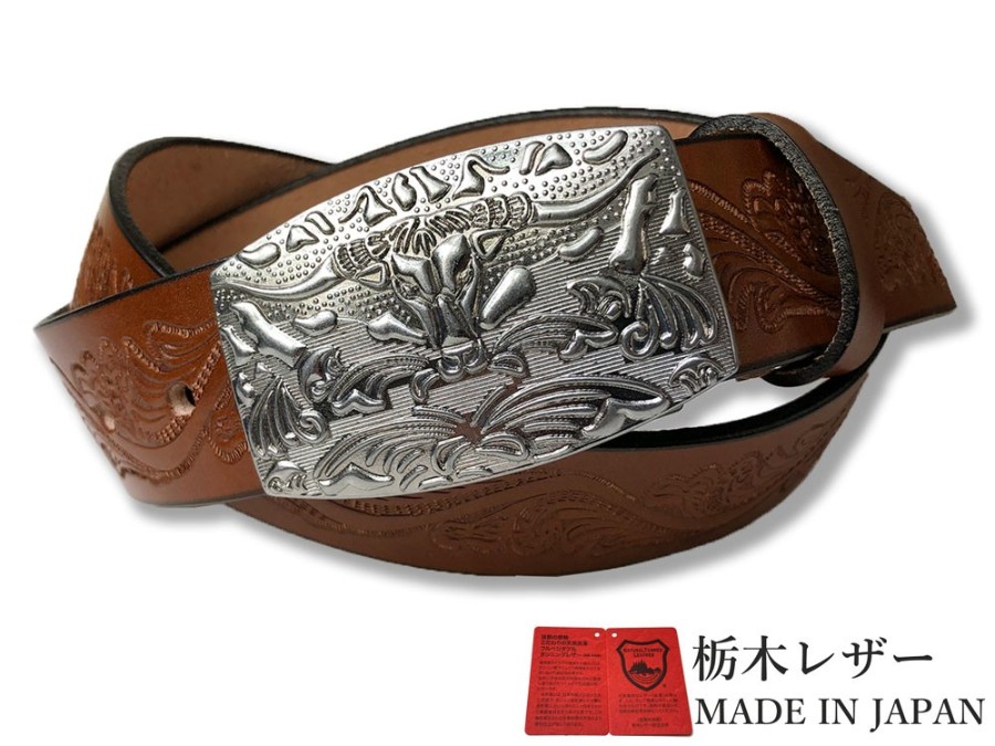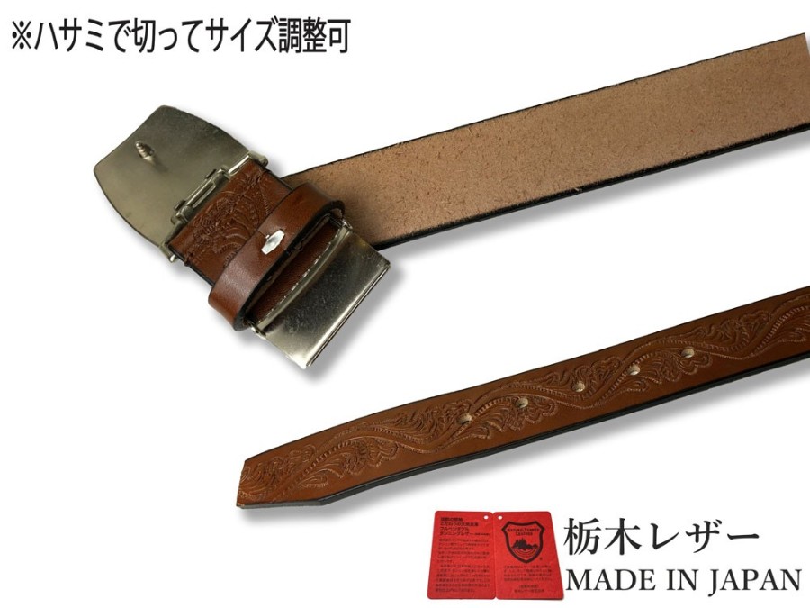 Tochigi Leather Belt for Men, Genuine Cowhide Leather, Top Buckle, Casual, 40mm, 2 Sizes, Embossed Craft Finish, 2 Colors, Made in Japan, Suitable for Denim Jeans, Men's & Women's.