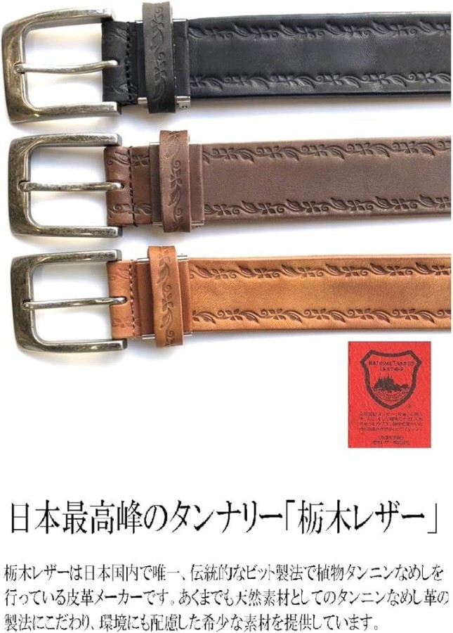 日本が誇る革の匠「栃木レザー」の良質ヌメ革(*フルベジタブルタンニンなめし革)通称:サドルレザーベルト。