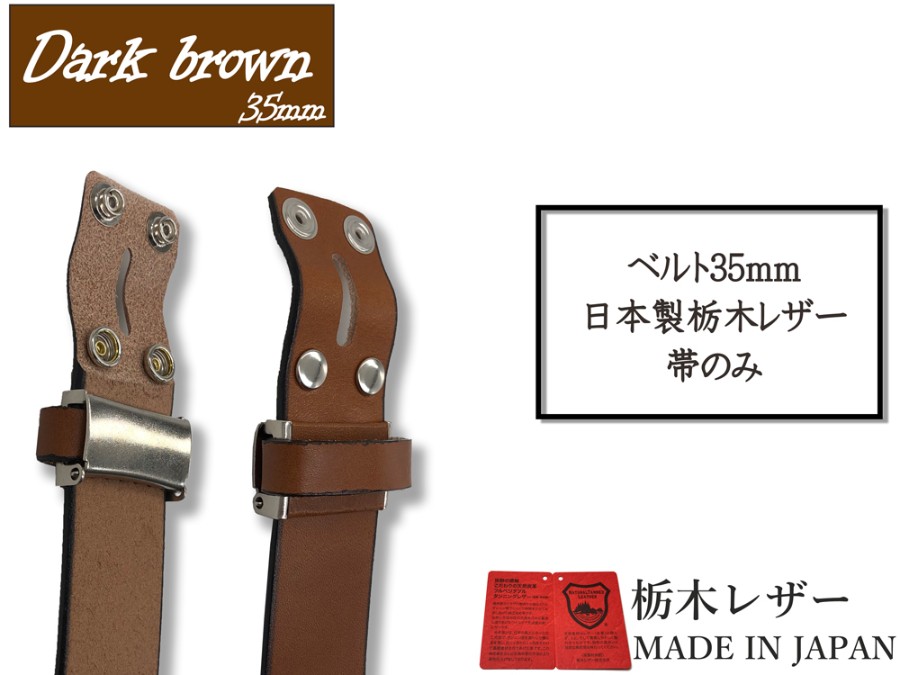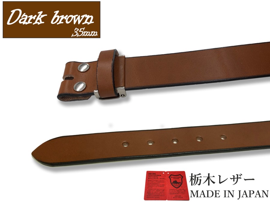 Tochigi Leather Men's Genuine Leather Cowhide Belt, 35mm Wide, Leather Only, Strap Only, Buckle Not Included, Replacement Belt, 2 Sizes, 6 Colors, Made in Japan, Suitable for Denim Jeans, Men's & Women's.