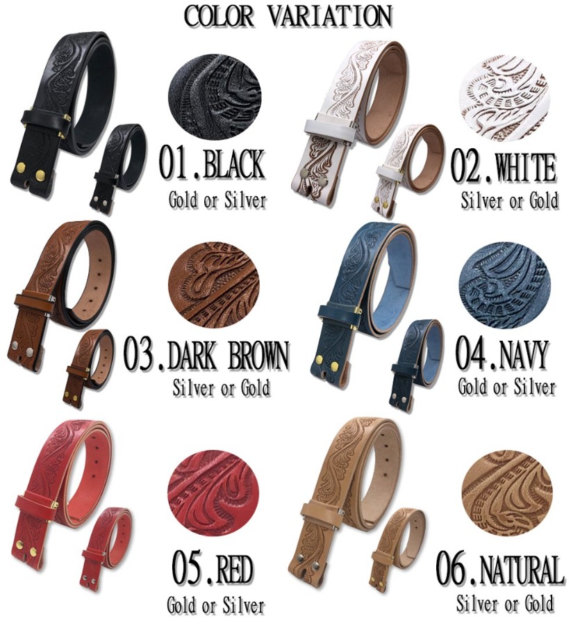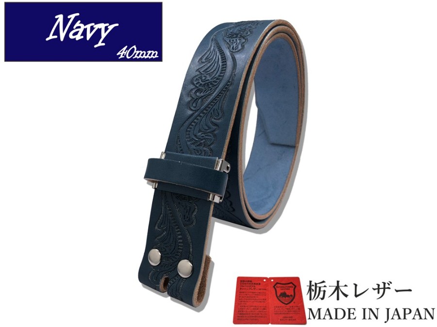 Tochigi Leather Men's Genuine Leather Cowhide Belt, 40mm Wide, Leather Only (Strap Only, Buckle Not Included), Replacement Belt, 2 Sizes, Embossed Craft Finish, 6 Colors, Made in Japan, Suitable for Denim Jeans, Men's & Women's.