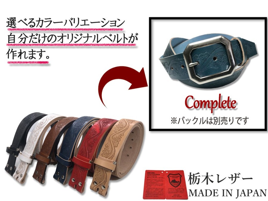 バックルは別売りの帯のみの販売になります。サイズ調節も簡単にできるため男女問わず支持していただいているアイテム。革にこだわりつつも、様々なバックルで楽しめるよう汎用性高い機能を盛り込み、ギャリソンカットされた剣先は他にない味わい。しっかりとした革で高級感があり、長年使える定番の一本になってくれる商品です!