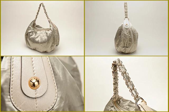 光沢のあるナイロン素材で、高級感があり、ふんわりとした女性らしいフォルム。ストラップには、ゴールドのチェーンを使いゴージャスな印象に。ロゴがデザインされたメタルプレートで存在感をアピール。とても軽量で肩の負担が少なく、荷物が多くなっても安心です。さっと持って出かけたいときに、普段使いに最適なホーボーワンショルダーバッグです!