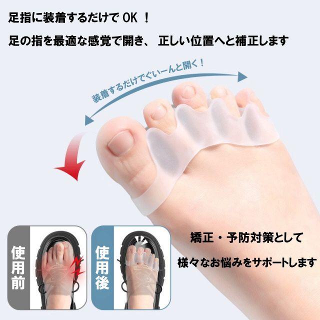 足の指を最適な感覚で開き、正しい位置へと補正する足指セパレーターです。外反母趾・内反小趾・ハンマートゥの矯正、足の疲労、むくみ・冷えなどの予防対策として様々なお悩みをサポートします!伸縮性があり耐久力のあるシリコン製なので毎日の使用も安心。やわらかでよく伸びるので装着も簡単。左右兼用なので装着時に左右で悩む必要がありません◎足指に絶妙にフィットしずれにくく、装着後靴下や靴を履いても大丈夫なので外出時も着用できます。日常に取り入れやすく毎日気軽に装着いただけ、足指を開くことで足裏のバランスを整え、負担を軽減します。