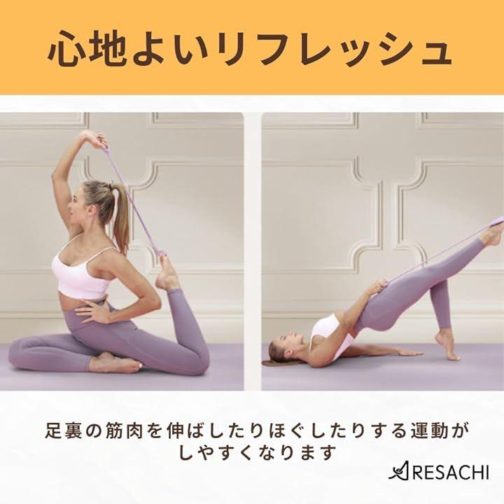 「足裏のストレッチで心地よいリフレッシュ」ゴムチューブを使うことで、足裏の筋肉を伸ばしたりほぐしたりする運動がしやすくなります。
