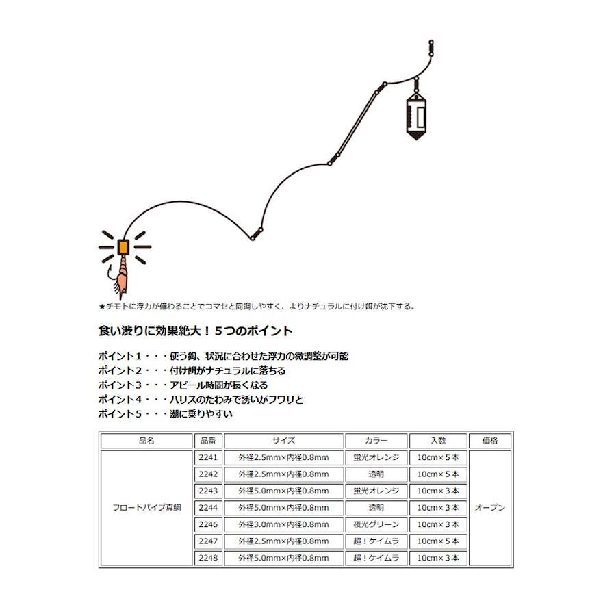 新潟、上越「さとみ丸」より火がつき、各地で好釣果を上げているその名も「フロート釣法」。パイプ形状にすることにより、ビーズではなしえなかった「浮力の微調整」が可能になり、この釣法をより深く追求することができます。状況、魚種に応じたカラー、サイズを取り揃えました。