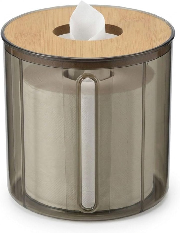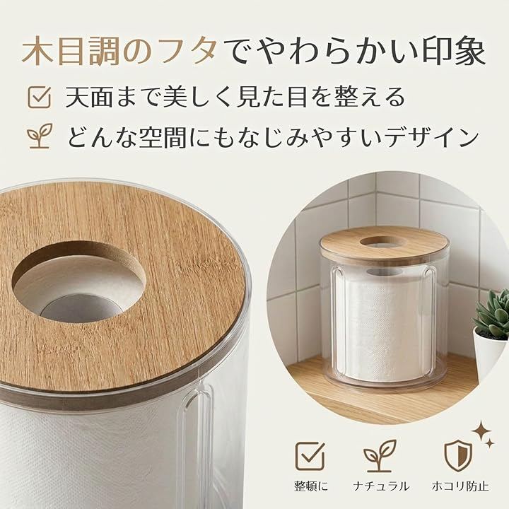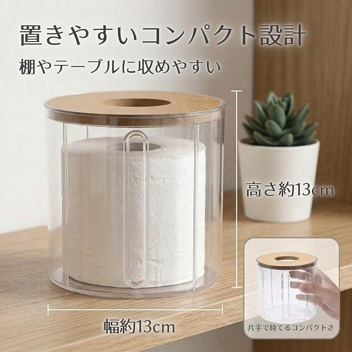置き型トイレットペーパーケース・2カラー展開で、透明(クリア)とグレー(スモーク)の2色から選べる置き型トイレットペーパーケース。