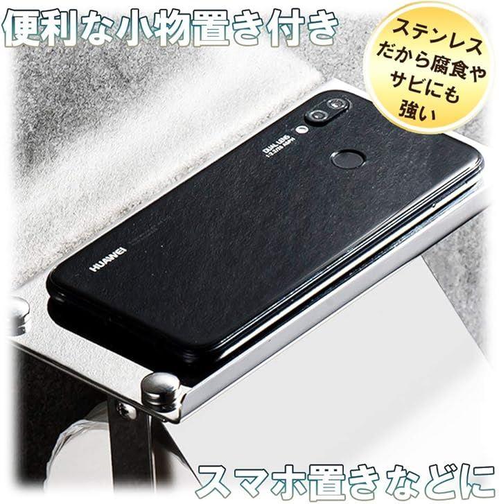 「快適な空間作りに」小物置き付きのステンレス製トイレットペーパーホルダーです。