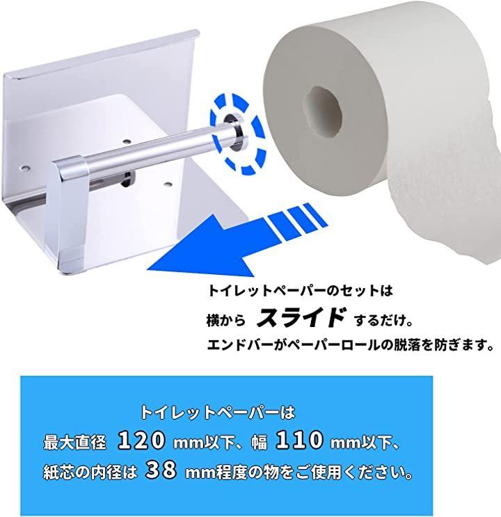 「対応トイレットペーパーサイズ」直径120mm以下、幅114mm以下、芯アリ内径38mm程度のトイレットペーパーをご使用ください。