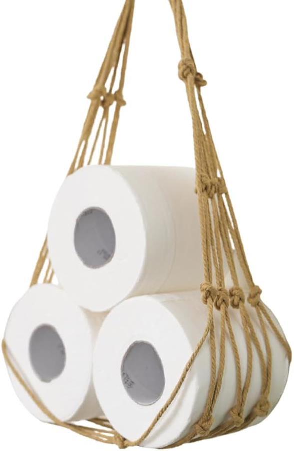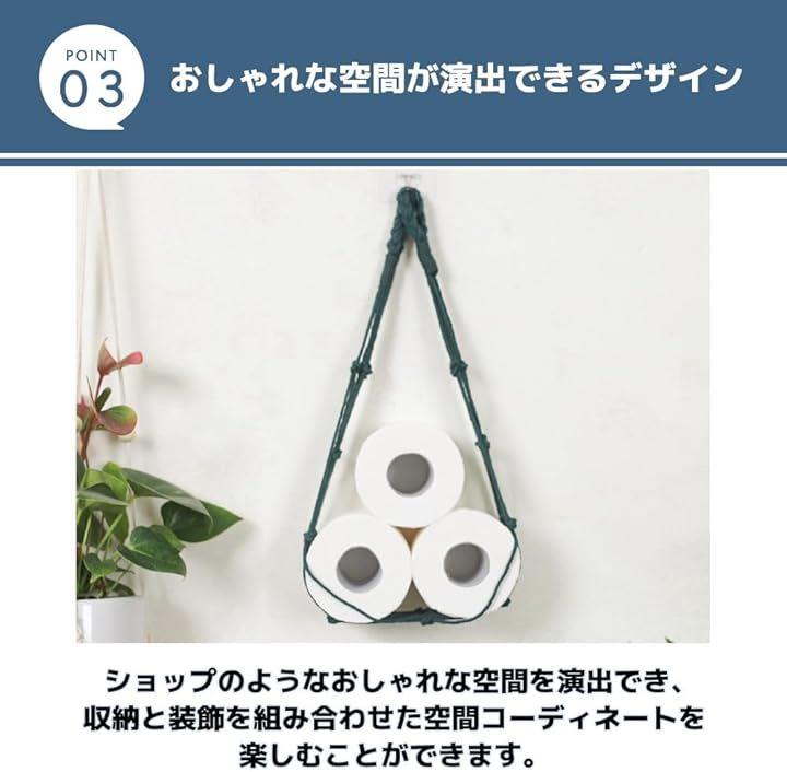 「スタイリッシュにトイレットペーパーを収納」壁の空いたスペースを活用して「スタイリッシュな収納」を実現するトイレットペーパー収納用のネットホルダーです。