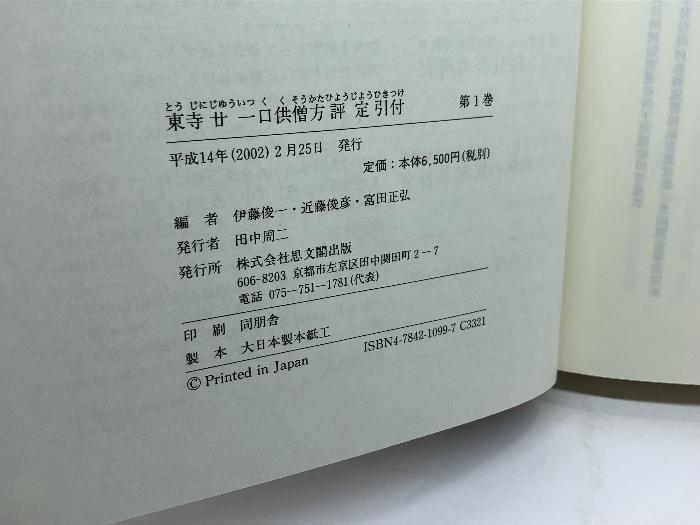 商品名:東寺廿一口供僧方評定引付 1巻・2巻セット 思文閣