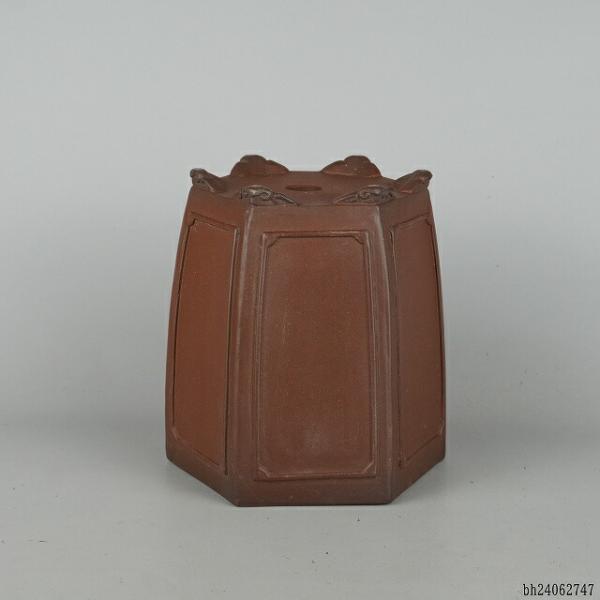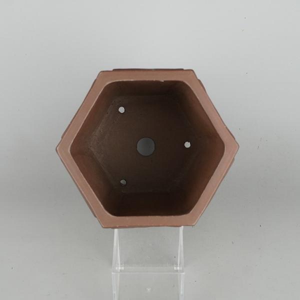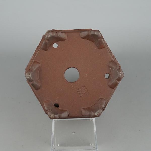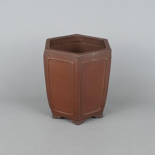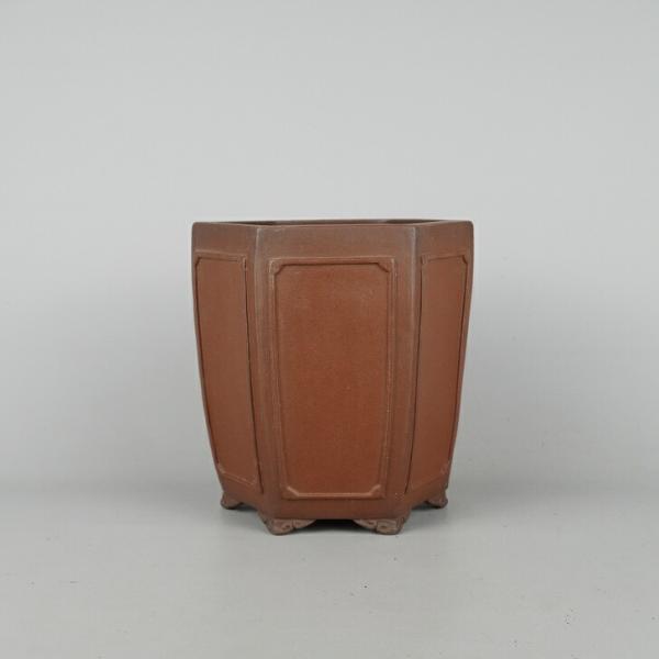 Tokoname Shibakatsu bonsai pot, small, approximately 16.3cm tall, hexagonal pot, Kumashi style, framed, kengai style, clay, in original condition, new