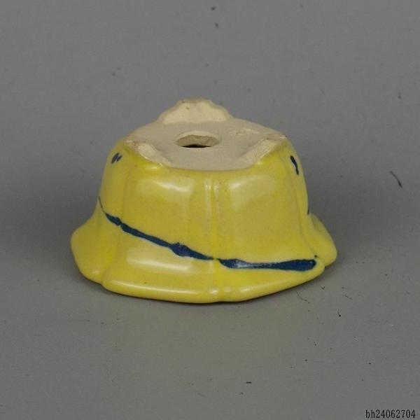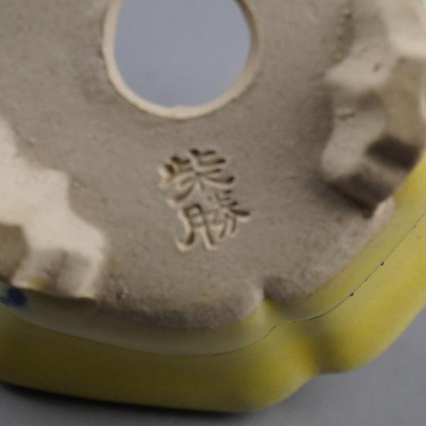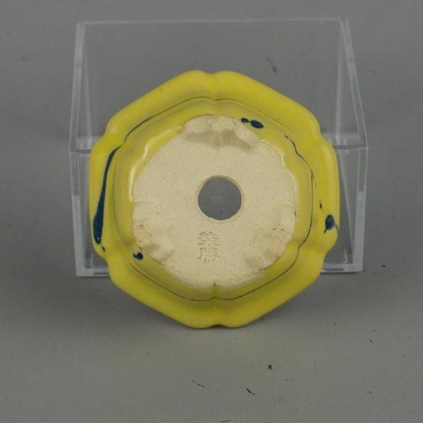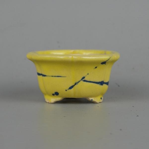 Tokoname Shibakatsu small bonsai pot, approximately 6.5cm long, with a floral pattern and yellow glaze. Brand new.