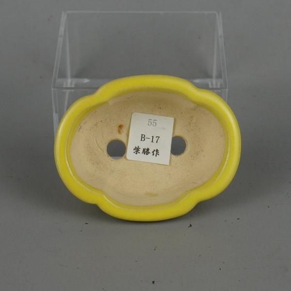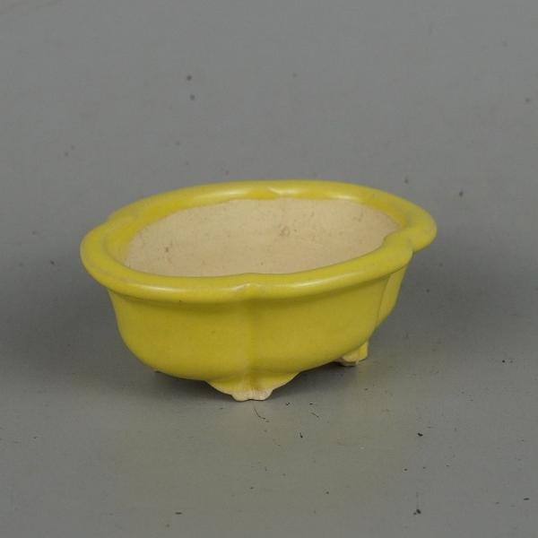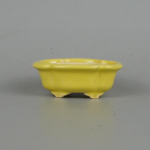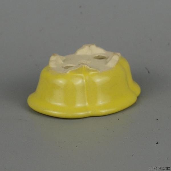 Tokoname Shibakatsu small bonsai pot, approximately 8cm long, quince-shaped, yellow glaze, brand new.