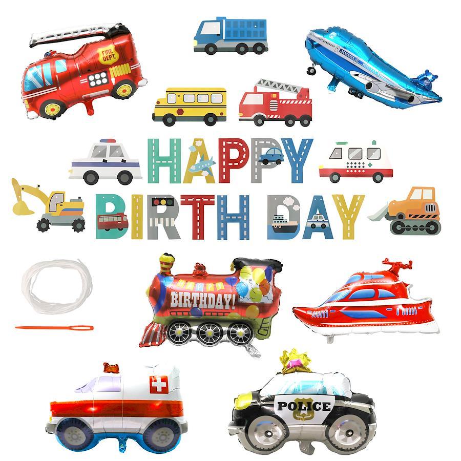 今年のバースデーは、君の大好きな乗り物が駆けつける! 陸・海・空の乗り物がセットになっているから、 乗り物好きのお子様にぴったりです! 好奇心や想像力を刺激するバルーンを使った教育にも!【セット内容・サイズ】バースデーガーランド:縦幅小8cm~大12cm 横幅:小3cm~大16cm、消防車:縦44cm 横66cm、 汽車:縦42cm 横65cm、船:縦52cm 横92cm、救急車:縦45cm 横75cm、パトカー:縦44cm 横66cm、飛行機:縦31cm 横75cm本商品は空気が入っていない状態での発送になります。【免責事項】メーカーによる商品リニューアルに伴いパッケージ(内容量も含む)変更が行われた場合、新パッケージでお届け致します事ご了承願います。