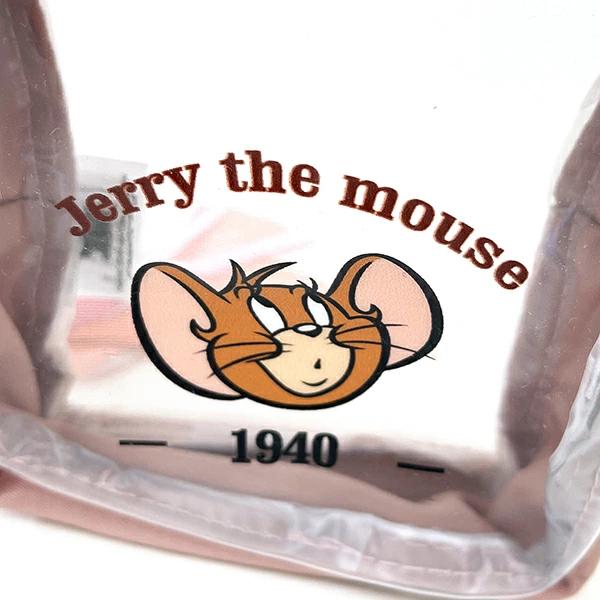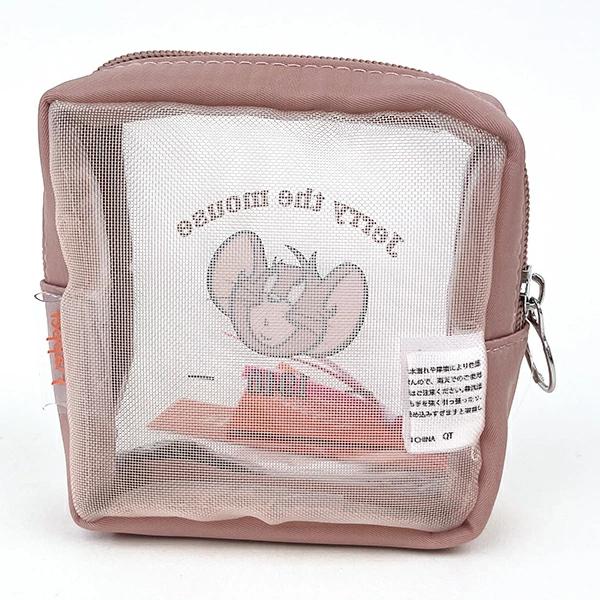 トムとジェリーのクリアなミニスクエアポーチです。マチがあるので、厚みのあるものも入れられます。表面はクリア、背面はメッシュの涼しげなデザイン。