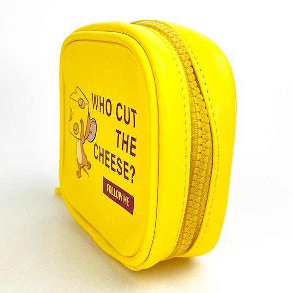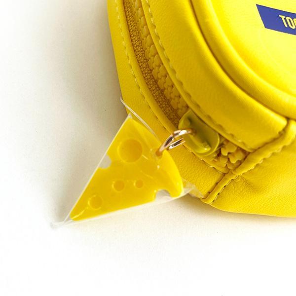 チーズで目を隠してるジェリーと、タフィーがかわいい新アート!引き手のチーズチャームがポイントのポーチ!ポーチ本体にはチーズを表現した穴が型押しがされており細部までこだわったアイテムになっております♪