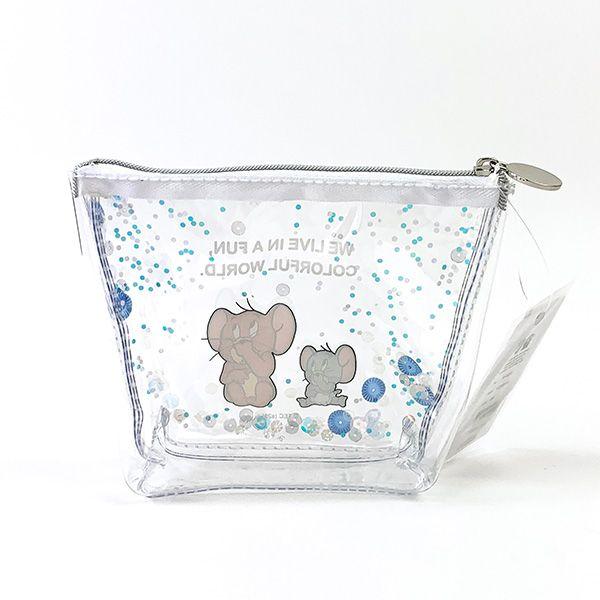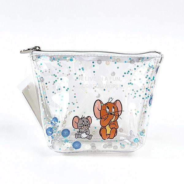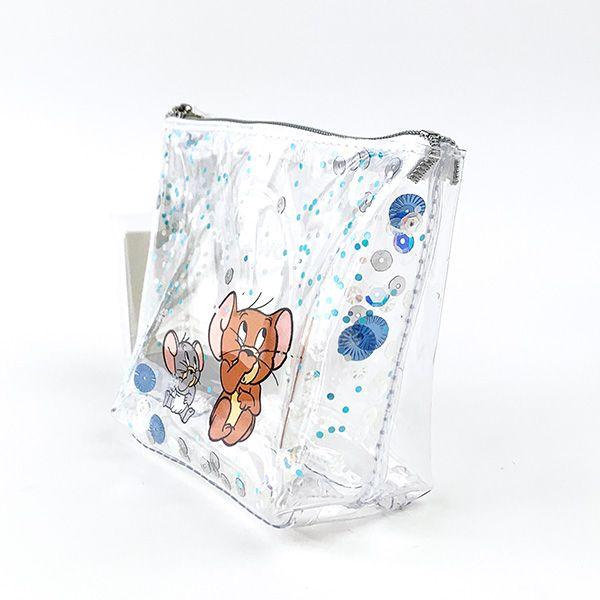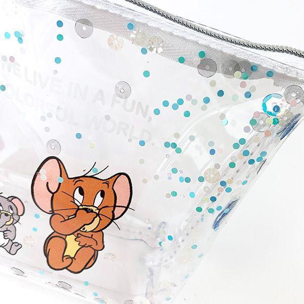 流行りのクリア素材でトムとジェリーデザインのポーチです。キラキラグリッターがかわいい♪クリア素材で中身が見えるポーチだからかわいく収納してオシャレに持ちたいですね♪
