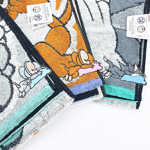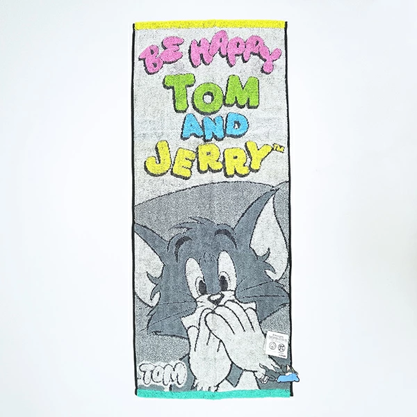 トムとジェリ―のトムが大きく描かれた迫力満点なフェイスタオルです。 トムが大きく描かれた迫力満点なデザイン◎落ち着いたカラーリングとダイナミックなデザインは見るだけで元気がでるアイテムです。右下にあしらわれたアップリケ刺繍もキャラクターごとに違ったデザイン◎優れた吸水性だけではなく毛羽の発生を格段に抑制した環境にも人にもやさしい♪ふわふわした無撚糸で触りごごちの良くボリュームがあり、ご自分用はもちろん、ご友人へのプレゼントなどにもおすすめ★お子様の部活などの汗拭きなどにもおすすめ!