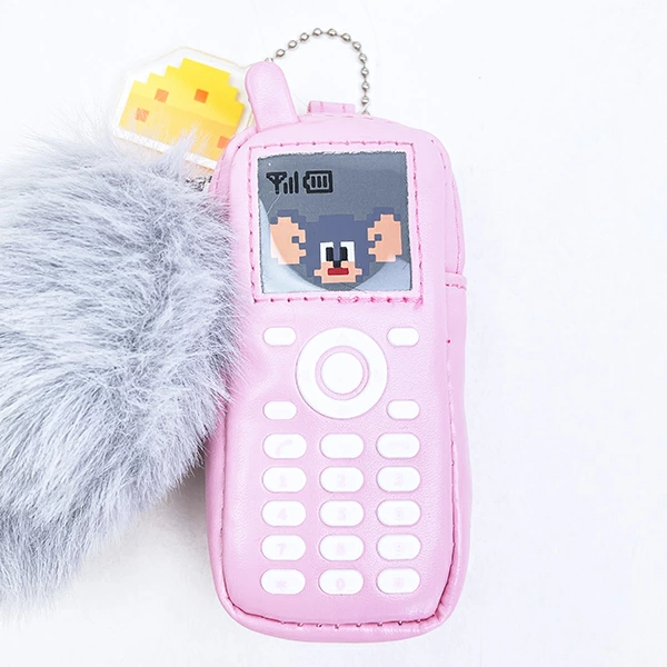 トムとジェリーの携帯モチーフポーチです。ドット絵のチーズチャームとふわふわしたファーの引手がキュート??ボールチェーン付きなので、チャームとしても使えます◎遊び心あるデザインのポーチなのでお友達へのギフトにもおすすめです☆彡
