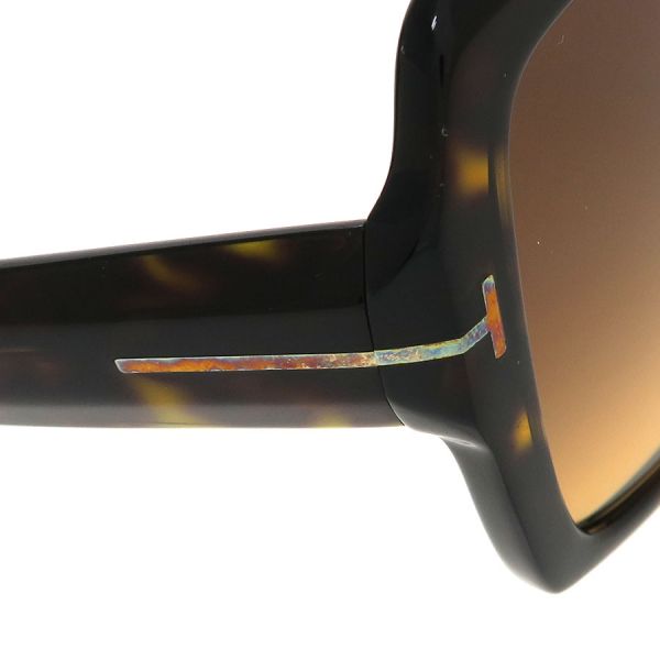 トムフォードのサングラスの入荷です!べっ甲柄のフレームに茶系色のグラデーションになったレンズがデザインされています。テンプル部分はやや幅広。レンズとテンプルの継ぎ目がTの字で金色の金具のラインになっているのがお洒落!ノースパット部分は色抜きになっています。★状態は、フレームの小傷・くすみ、レンズの僅かな小傷・くすみ、Tの字の金具ライン部分の小傷・メッキ剥げ、内側の丁番金具のメッキ剥げ・メッキ薄れ、先セル(モダン)の表のロゴプレートのメッキ剥げ・内側のスレ等がございます。まだまだご使用いただけますよ!いかがですか!?