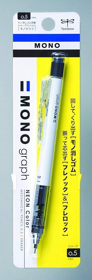●仕様:繰り出し式モノ消しゴム搭載のシャープペンシル。高精度の「書く」と「消す」を1本で実現。パック入り。◆本体サイズ:最大幅16×全長147mm◆本体重量:17g◆機構:フレノック式(ロック機能付き)、クリップノック式 ◆回転繰り出し式消しゴム付き(MONO品質) ◆製図仕様のペン先 ◆パック仕様 ◆替え消しゴム:ER-MG ◆芯径:0.5mm
