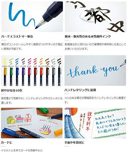 筆圧がコントロールしやすいハードエラストマー筆芯で大胆な太い線から繊細な極細の線まで幅広い表現ができる筆文字サインペンのカラータイプ。
